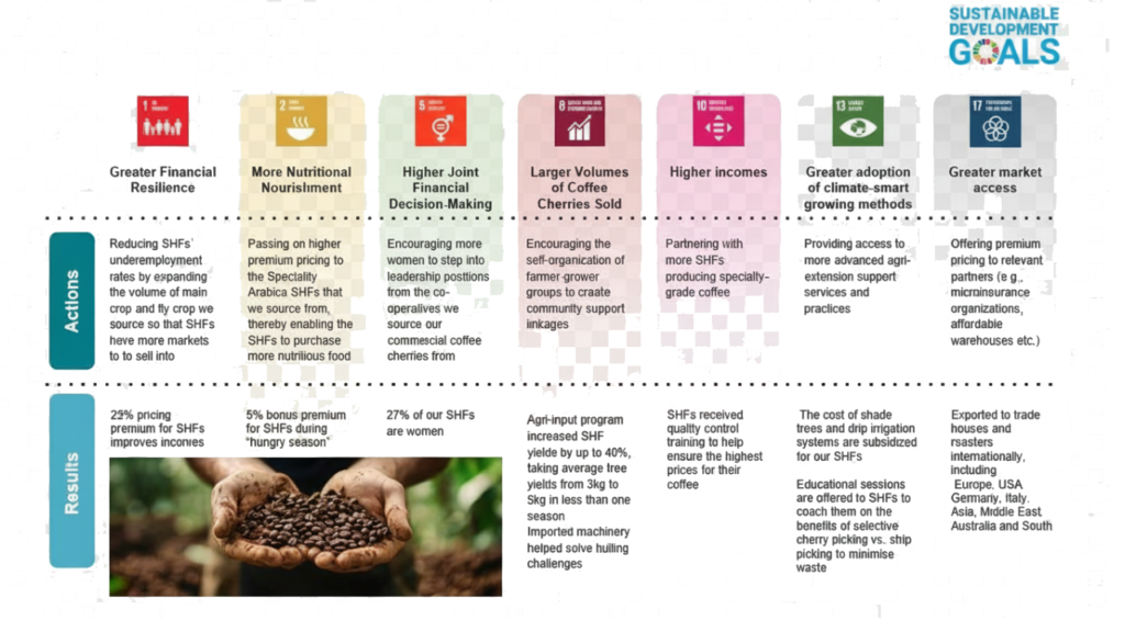 We foster environmentally responsible, financially empowering, and socially inclusive partnerships throughout the supply chain to generate equitable economic prosperity and deliver enduring, positive impacts.